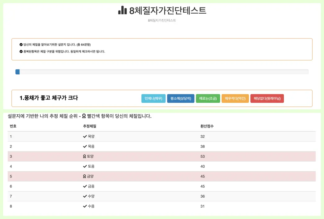 8체질 자가진단 테스트